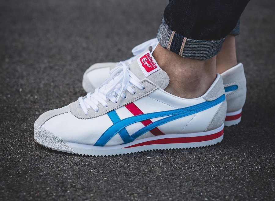 Au même titre qu’une Air Max 97, la Nike Cortez bénéficie d’une exposition remarquable en raison de son anniversaire. Si pour le moment, le modèle qui souffle sa 45ème bougie connaît une traversée sans embûche, Onitsuka Tiger entend bien jouer les trouble-fêtes. Même si cela paraît peine perdue, la Corsair va essayer de couler le navire Cortez. Est-il encore nécessaire de rappeler le litige qui a opposé la marque japonaise et la firme de Beaverton ? Aujourd’hui, les 2 silhouettes imaginées par Bill Bowerman sont 2 sœurs ennemies que rien ne semble pouvoir réconcilier. La running qui porte un Tiger Stripe, bleu et rouge pour la Island Blue, évolue aujourd’hui dans l’ombre de celle qui porte un Swoosh. Elle se rappelle parfois à notre bon souvenir grâce à des coloris du calibre du modèle que nous présentons aujourd’hui. Un combo bien connu puisque la Onitsuka Tiger Mexico l’a déjà utilisé. La griffe nippone tentera de réécrire une nouvelle page de son histoire dans 2 ans, à l’occasion de ses 50 ans. D’ici là profitons de cette belle paire. Disponible au prix de 90€ chez Zalando.fr.