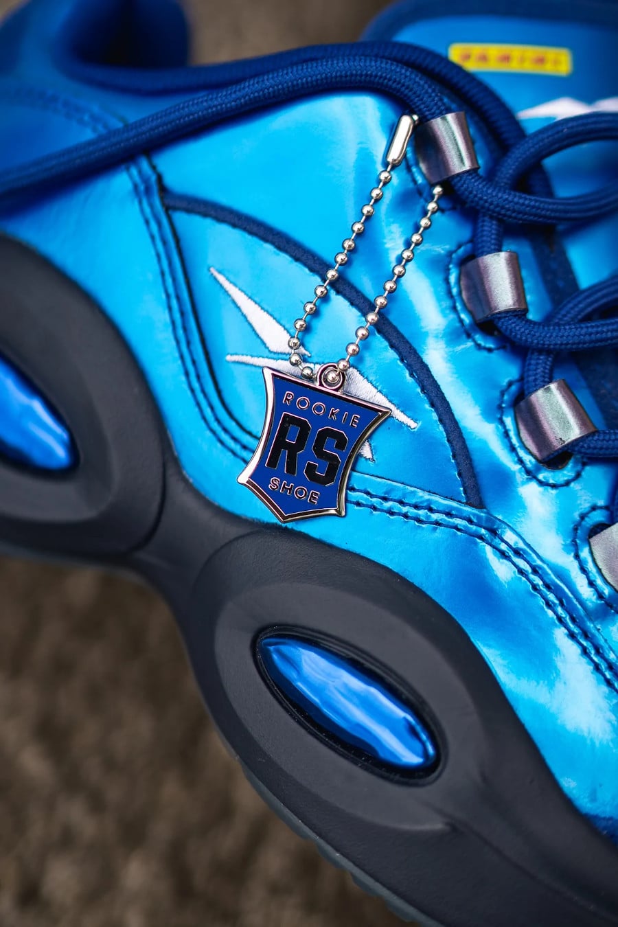Le pack Prizm interpelle. Pourquoi la Reebok Question se retrouve t-elle au coeur d’une collaboration avec Panini ? Vous êtes beaucoup à vous interroger sur le lien entre la signature shoe d’Allen Iverson et la maison d’édition italienne. En France, on connait surtout des cartes à l’effigie des footballeurs. Figurez-vous qu’elle commercialise aussi des albums d’images autocollantes exploitant la licence NBA. Ainsi, la Reebok Question Mid Tiger Prizm s’inspire d’un sticker très rare représentant The Answer. La Rookie RS Signature, une RQ Low en cuir verni bleu, a un look rappelant une Draft Picks Card. La Black Pulsar Prizm est la plus limitée puisqu’elle a été produite à seulement 2350 exemplaires. La chaussure en patent leather orné d’un hologramme nous ramène à la première saison d’AI chez les Philadephia Sixers. Le mythique numéro 3 a inscrit 23.5 points en moyenne.