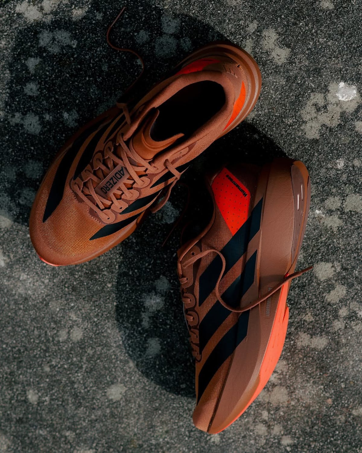 La Pharrell x adidas Adizero EVO SL Mars Preloved Brown sort au prix de 160€ le samedi 21 mars 2026 sur adidas.com et l’appli Confirmed.