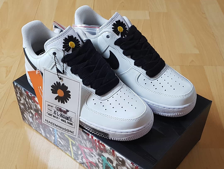 La collaboration entre la star de la K-Pop et la marque à la virgule semble bien partie pour durer. La Peaceminusone x Nike Air Force 1 Low G-Dragon ‘Para Noise 2.0’ prouve que son concept est déclinable à l’infini. A l’image de l’édition 2019, la AF1 White dissimule une illustration élaborée par le leader du groupe Big Bang. Le temps aidant, la peinture s’écaillera afin de lui laisser place. Si vous êtes impatient, rien ne vous empêche de gratter l’empeigne pour accélérer le processus. La GD x Air Force 1 ’07 2020 ne cherche point à innover. Elle applique la recette ayant marché l’an dernier. Les gros lacets ainsi que la broderie de marguerite, la fleur qui sert de logo à PMO®, sont toujours d’actualité. Vous aurez remarqué que sur cette nouvelle version les pétales sont plus blanches mais noires. En vente au prix de 199.99€ le mercredi 25 novembre au Nike Store.fr (à 9 heures) : voir la paire.