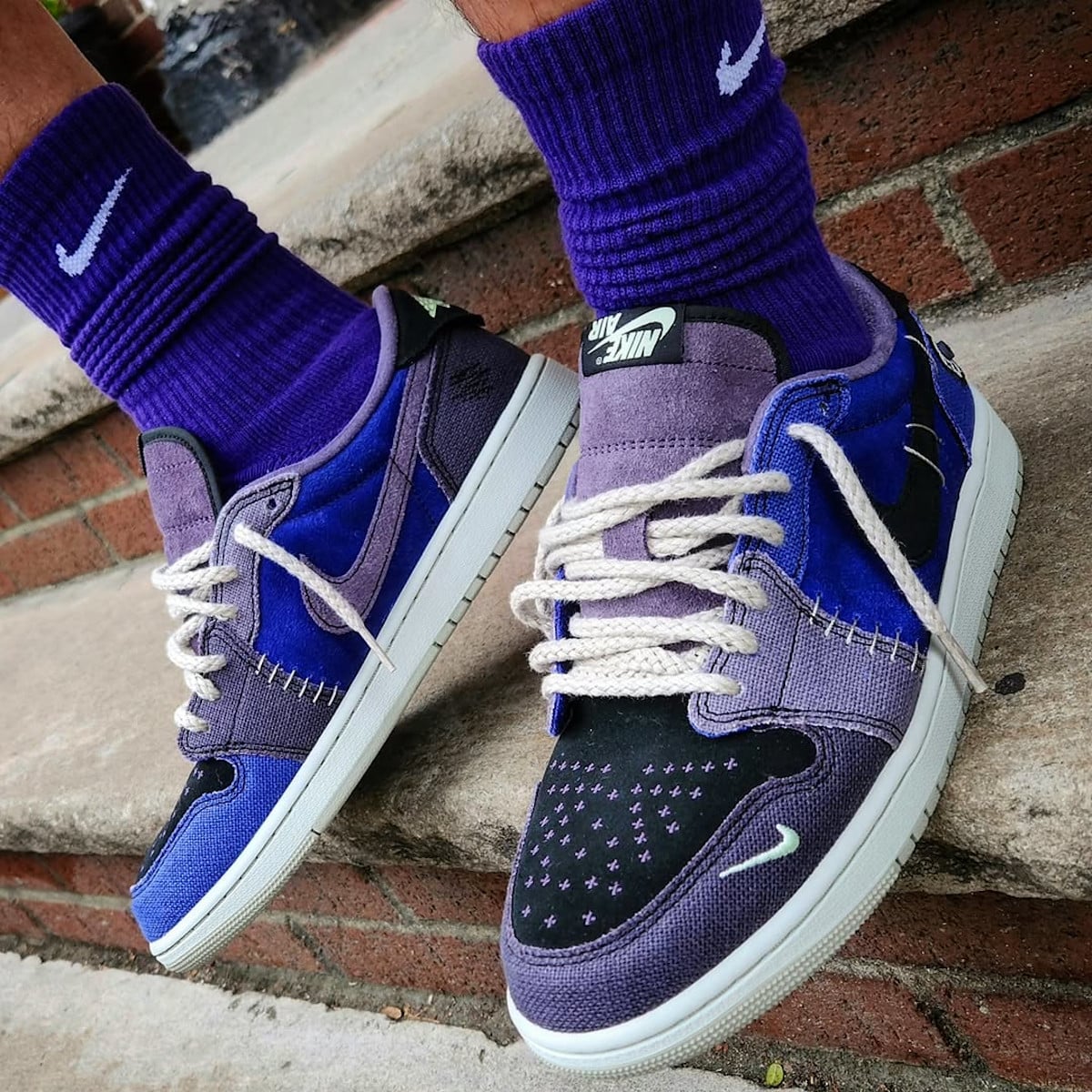 Premier réflexe : sortir les chaussettes blanches Nike du placard. Mauvaise pioche. Le mélange purple-green-black demande du noir ou du violet foncé. Les chaussettes blanches créent un point d’attention qui casse tout. C’est comme porter des Crocs avec un costard. Techniquement possible, esthétiquement discutable.
