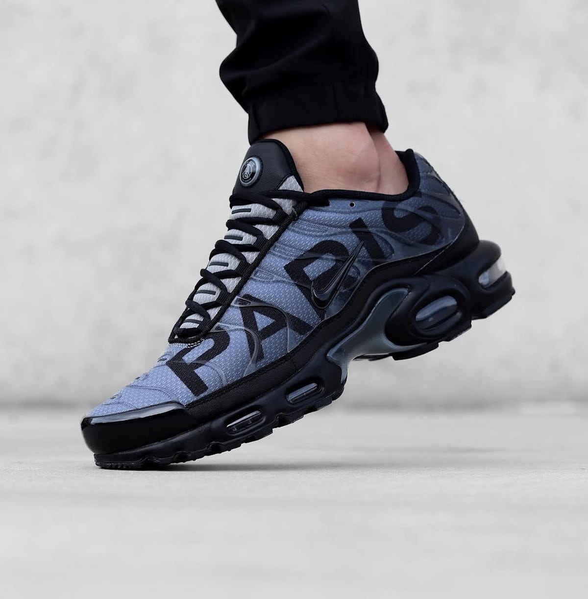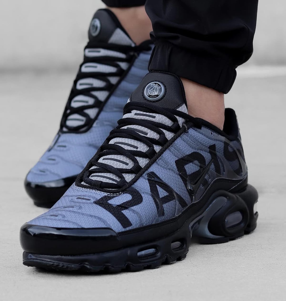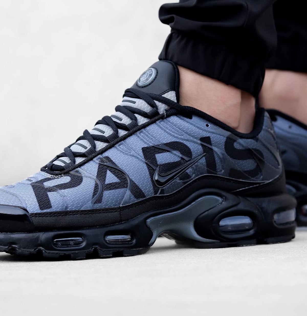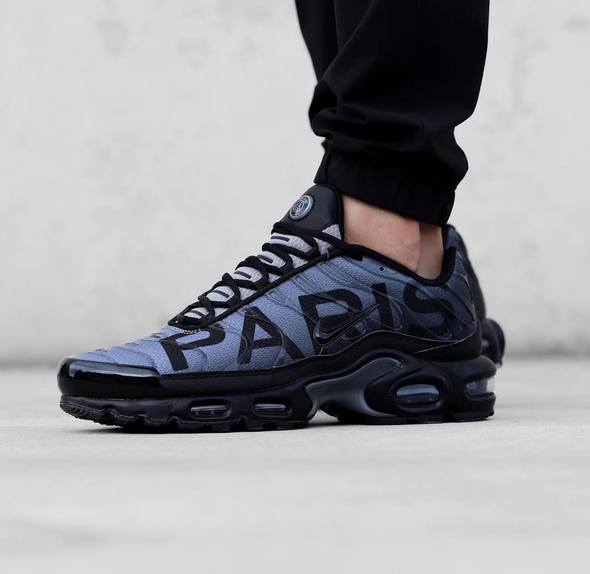 Le Paris Saint-Germain et Nike frappent fort avec cette Air Max Plus PSG Black Anthracite. Sortie quelques semaines après le sacre historique du PSG en Ligue des Champions, cette édition marque un virage stylistique radical : fini les traditionnels bleu et rouge, place à un coloris urbain et intemporel relevé par un énorme « PARIS » qui rappelle la Tuned 1 « Big Logo » de 2017. Entre sobriété et provocation, cette collab divise déjà.