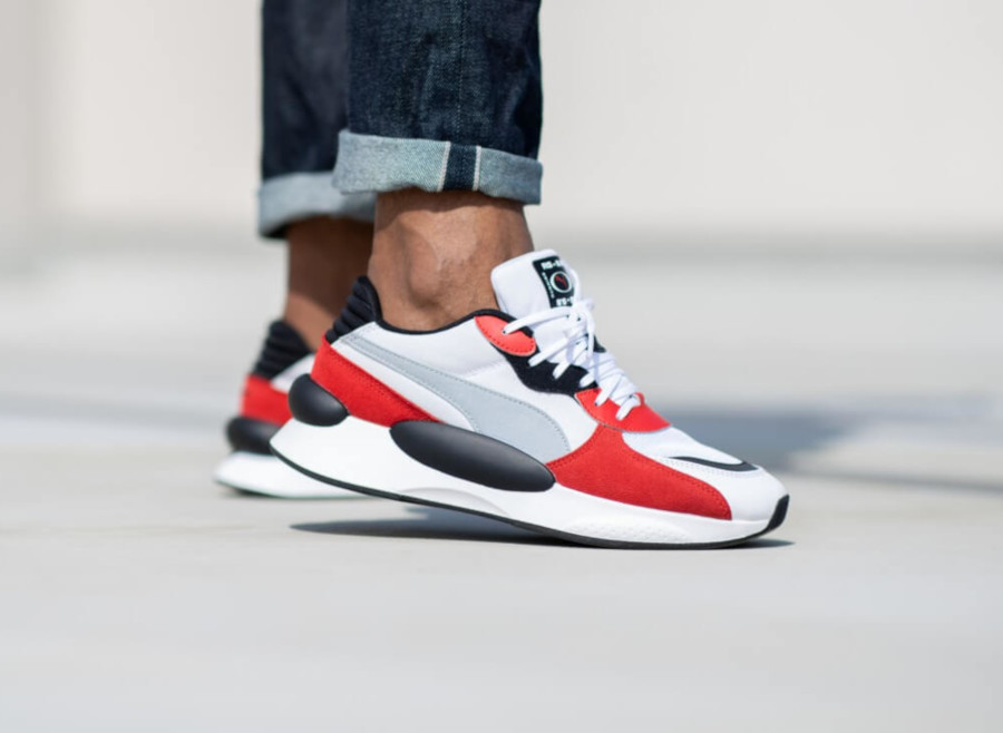 La marque au félin profite de sa collaboration avec la Nasa afin de propulser sa nouvelle fusée. La Puma RS9.8 étoffe un peu plus la gamme Running System. Son nom vous interpelle ? 9.81 m/s² exprime la valeur moyenne de l’accélération de la pesanteur à la surface de la Terre. Grâce à sa semelle en mousse, la nouvelle basket Puma entend bien bouleverser les lois de la physique. Son design s’éloigne d’une RS-X, le modèle phare de cette série relancée en 2018. On croirait voir une Puma RS 0 simplifiée. La RS9.8 surfe sur le thème spatial comme nous l’avons vu plus haut. Les intercalaires en PU sur la midsole ont une forme sphérique. Ils s’inspirent des objets célestes. Le modèle est mixte. Plusieurs colorways homme et femme sont disponibles dont les Puma RS 9.8 Space White Teal Green et High Risk Red. Vous pouvez les acheter au prix de 90€ chez Puma France : voir les paires.