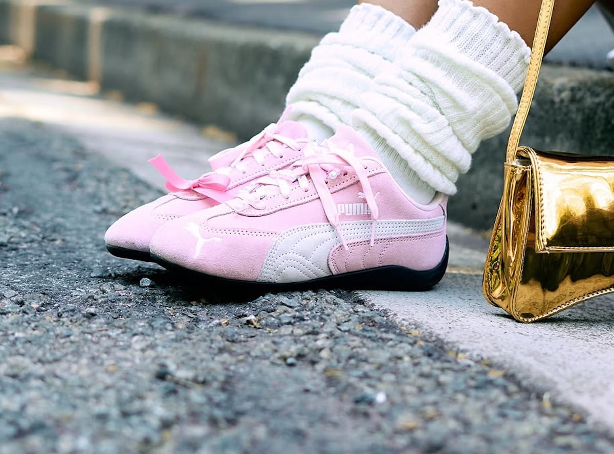 Une douceur aux allures de bolide. La sneaker pour femme allie minimalisme et touche sucrée. La Puma Speedcat OG Whisp Of Pink est un véritable bonbon pour les yeux. Avec sa silhouette profilée inspirée du sport automobile, cette version ultra-féminine se pare d’un daim rose pastel. Le coloris s’avère aussi doux qu’un chamallow qui fond sous la langue. Le design reste fidèle à l’ADN F1 de la Speedcat, mais avec une touche plus délicate. Le célèbre Formstripe Puma en blanc cassé s’étire sur le côté. Un félin blanc brodé à l’avant ajoute une finition subtile et racée. Et sous cette douceur apparente ? Une semelle noire texturée façon pneu, qui rappelle les circuits où la Speedcat a fait ses preuves. Quand une sneaker réussit à conjuguer élégance et allure motorsport, elle tape forcément dans l’œil des vedettes. Dua Lipa, ambassadrice de Puma, a d’ailleurs été aperçue avec une Speedcat rose aux pieds.
