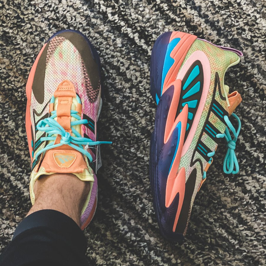La collection Pharrell Williams x Adidas Originals March Madness comporte 2 chaussures performance style basketball, la Adidas Crazy BYW 2.0 Yellow Tint Chalk Coral Trace Purple et la Adidas 0 to 60. Une sneaker basse et une autre montante avec un imprimé tie dye multicolor, la matérialisation du crédo « stay positive » du chanteur, afin que chacun y trouve son compte. A choisir, je me rabattrais sur la Adidas Crazy BYW 2.0 PW March Madness. La Boost Your Wear est facile à porter. L’autre à la fois volumineuse et expérimentale, s’adresse avant tout aux adeptes du ballon orange. En vente au prix de 179.95€ le lundi 6 avril chez Adidas.fr (à 10 heures) : voir la paire.