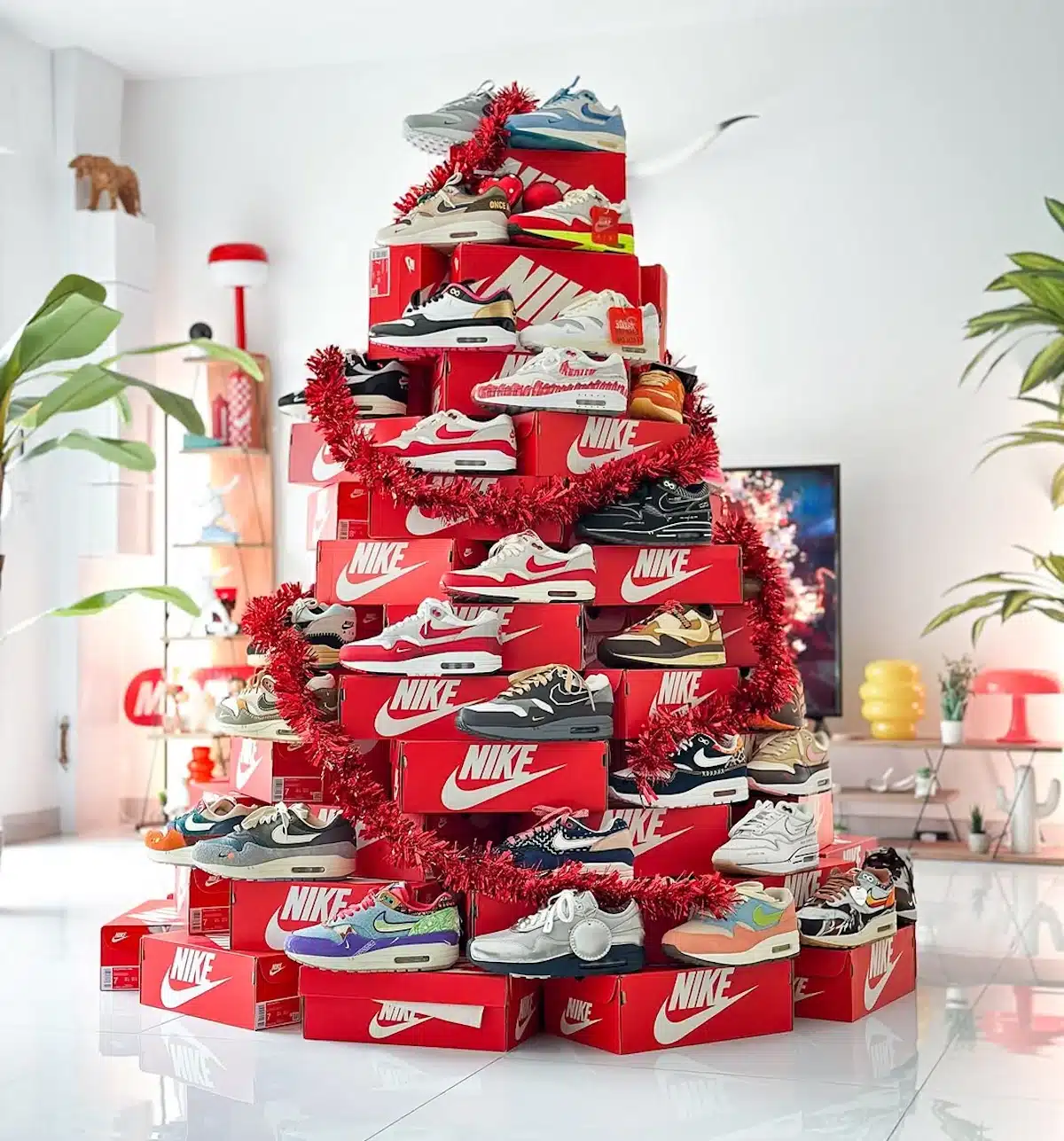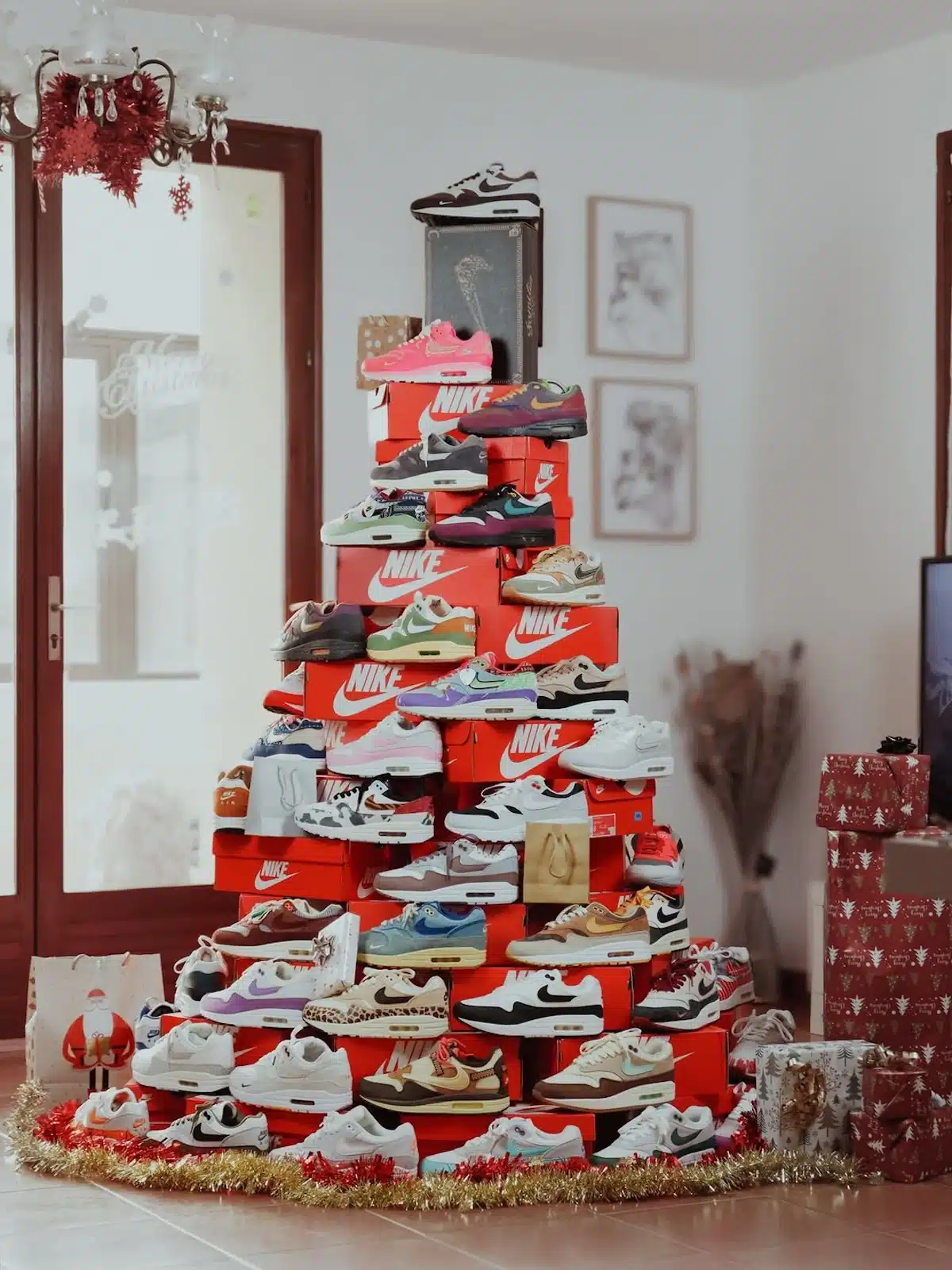 Le sapin sneakers cristallise ce mouvement. Apparu sur les réseaux il y a 15 ans, il devient vite un classique. Les Jordan 1 remplacent les boules. Les Yeezy 350 pendent aux branches comme des stalactites . Les boîtes Nike empilées forment parfois la structure même de l’arbre. C’est beau, c’est fou.