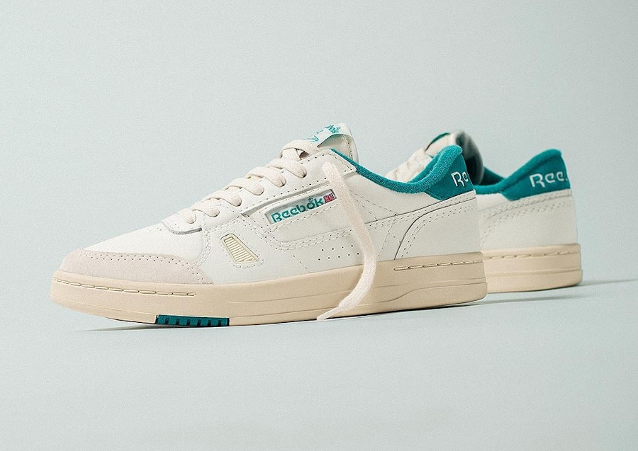 S’il y a bien une marque qui mise à fond sur le créneau des chaussures de tennis, c’est Reebok Classics. On ne compte plus les sneakers provenant de son catalogue des années 80. Besoin qu’on vous rafraîchisse la mémoire ? Citons les Club C 85, ACT 600, Revenge, Phase 1 Pro et NPC II. D’autres modèles s’inspirent des archives. C’est le cas des AD Court et Dual Court. Une nouveau modèle complète le duo. La Reebok LT Court ‘Chalk Seaport Teal Alabaster’ met en lumière la silhouette qui présente les traits de ses devancières. Par exemple, l’insert à logo avec l’Union Jack semble provenir d’une Club Champion. Ou encore la forme de sa partie avant. Par contre, sa semelle vintage a un autre shape. Les ressemblances s’arrêtent ici. Les coutures ainsi qu’un détail en TPU participent à lui donner sa propre identité. Bref, vous l’avez compris. Un adepte du Vector se doit d’ajouter cette basket blanche à la doublure en tissu éponge bleu turquoise dans sa liste des achats.