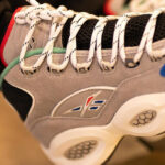 La Reebok Question Mid ‘Black Toe‘ Why Not Us? célèbre ses 20 ans. Les partisans de The Answer ont toujours en mémoire la basket blanche et noire qu’il portait lors du NBA All Star Game 2001 à Washington. Le joueur des 76ers de Philadelphie permit à la Conférence Est de l’emporter face à l’Ouest de Kobe Bryant. Les 25 points inscrits pesèrent lourds dans l’obtention du titre de MVP. L’inscription « Why not us? » (pourquoi pas nous) sur la languette est tirée de sa déclaration d’après match. Bubba Chuck avait à coeur de faire taire les mauvaises langues selon lesquelles son équipe ne pourrait remporter la victoire. Lui et ses partenaires étaient jugés « trop petits ». Son numéro de maillot (le 3) est imprimé au talon de la Reebok Hexalite. Quelques jours avant le All Star Game 2021, la marque au Vector vous propose une rétro de cette chaussure de basketball. Rappelons que la Question Mid resta pendant 5 ans un modèle player exclusive. Reebok ne l’a commercialisée pour le grand public qu’en 2006. En vente au prix de 160€ chez Reebok.fr : voir la paire.