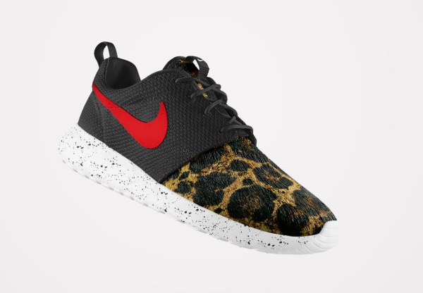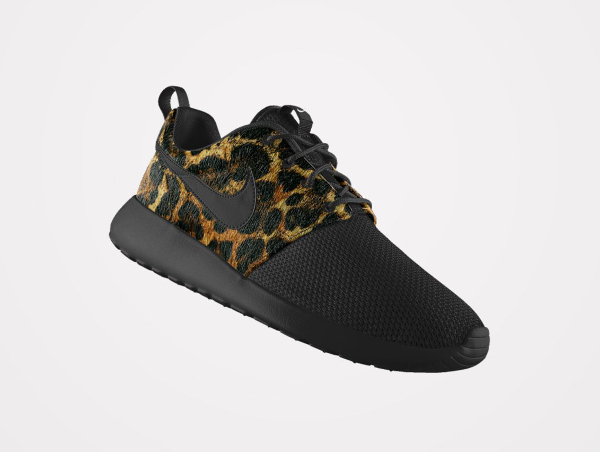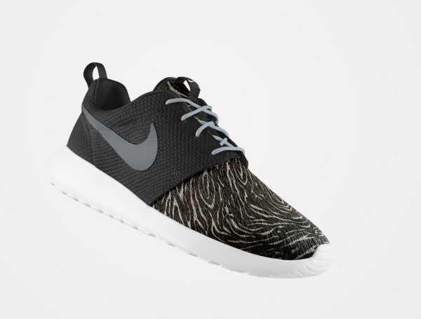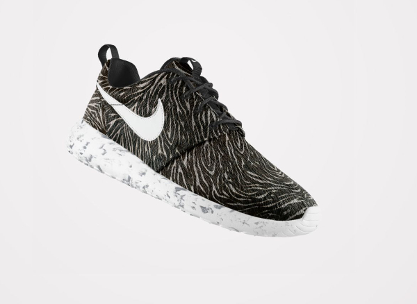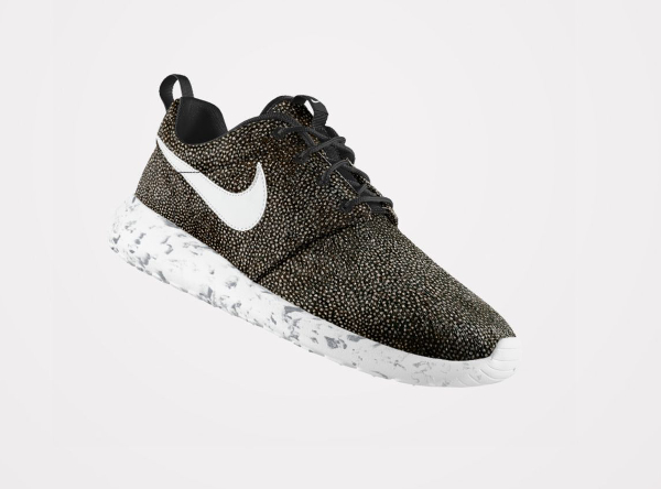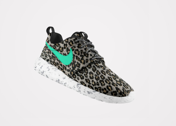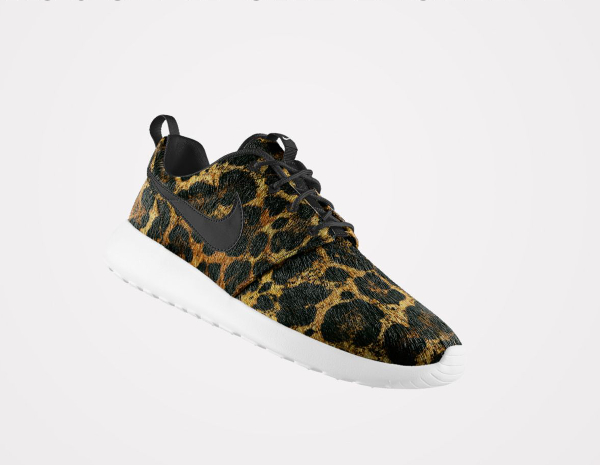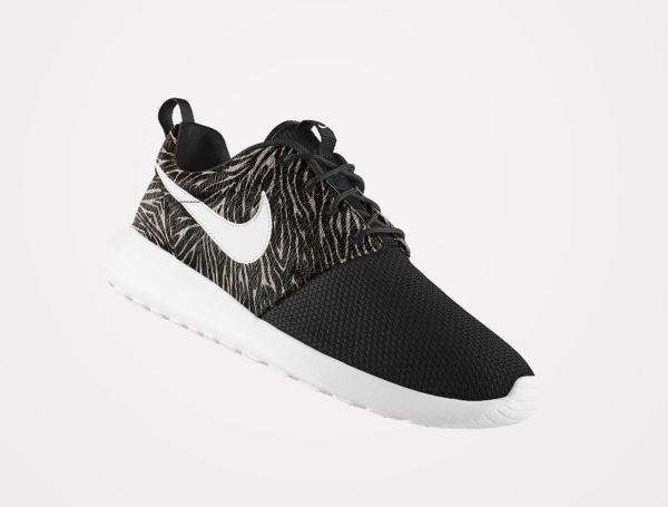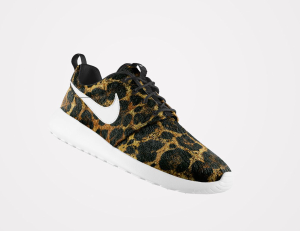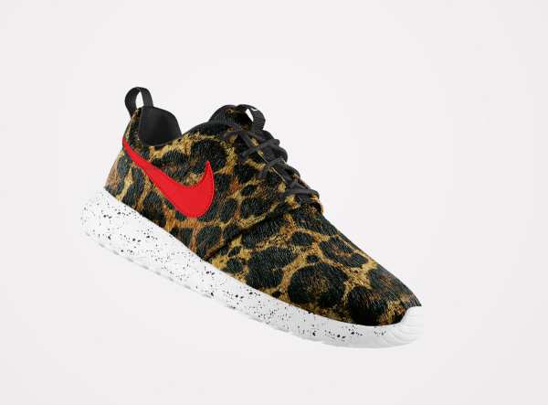 Peu de gens résisteraient à l’envie de pouvoir personnaliser une Roshe Run avec un imprimé animal. Chez Nike, ils en ont parfaitement conscience. L’option ‘Pony Hair‘ risque de faire du mal au portefeuille de nombreux fans. Plusieurs motifs sont mis à notre disposition : léopard, guépard, safari, zèbre. On peut même les associer (cela ne donne pas résultats probants). Par contre, les paires intégralement recouvertes par un motif, sont beaucoup plus intéressantes. La toe box en mesh et la base en crin de poney, passent très bien. Pour plus de fantaisie, il est possible d’opter pour une semelle marbrée ou mouchetée.