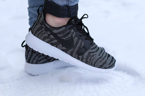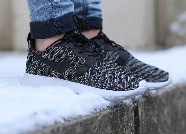Après la Air Max Thea, c’est au tour de la Roshe Run d’avoir sa version Jacquard. La technique de tissage mis au point par l’inventeur français au 19ème siècle, offre de belles possibilités. Vous rappelez-vous de la Air Max Lunar90 Game Royal/Copper Blue ou de la Air Max Lunar1 ‘Deepest Green’ ? Plusieurs coloris sont disponibles mais c’est bien l’édition Black/White la plus aboutie. Son empeigne en mesh tissé laisse apparaître des motifs complexes. Elle est en vente (100 euros) chez Zalando : voir la paire.