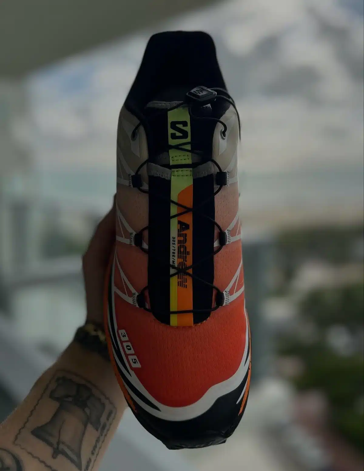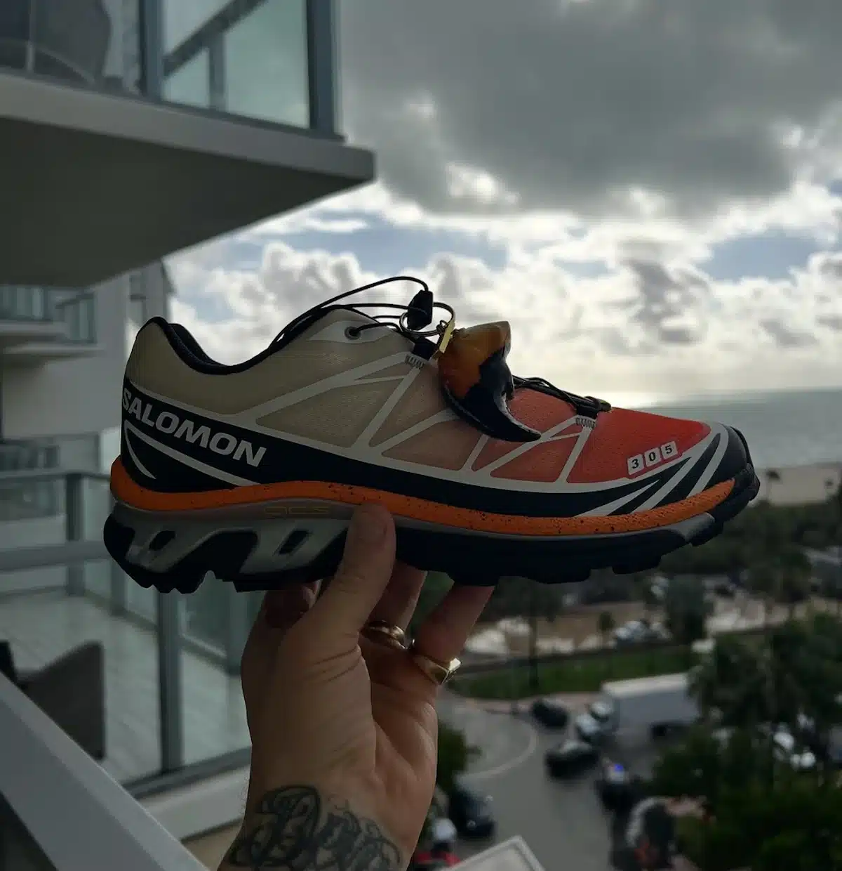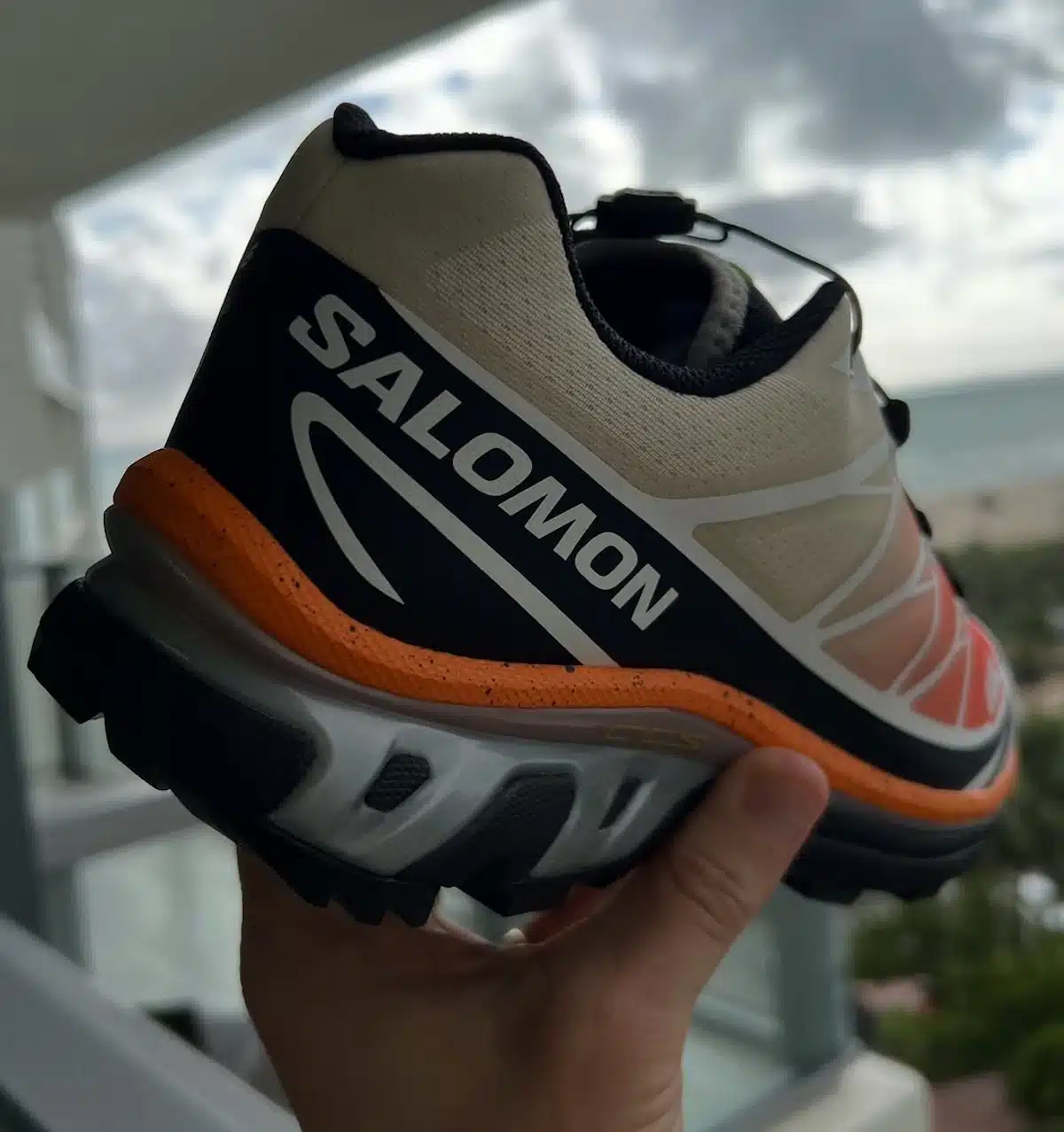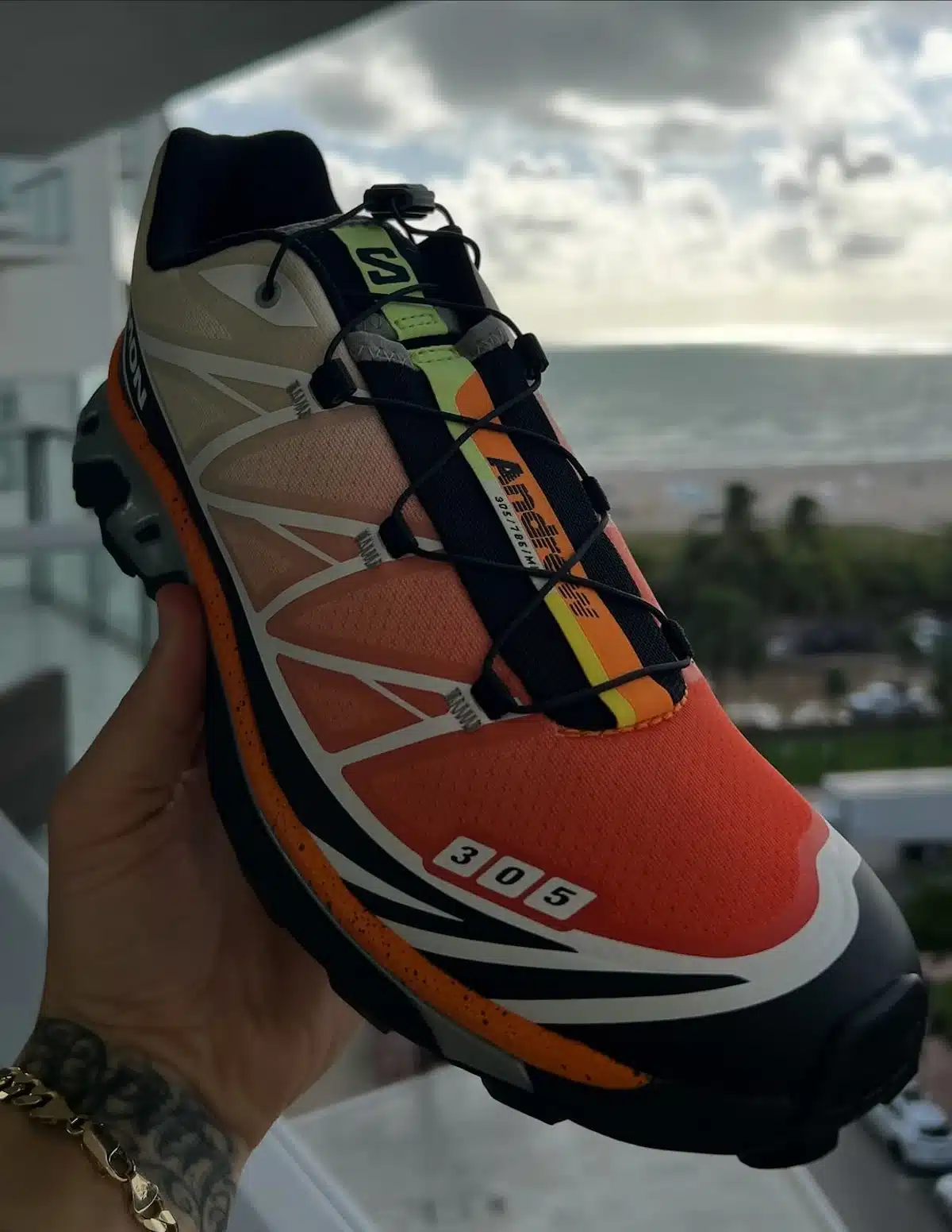 - La Salomon XT-6 s’inspire du Florida Stone Crab (crabe de Floride) d’où un dégradé orange et crème avec des éclaboussures noires