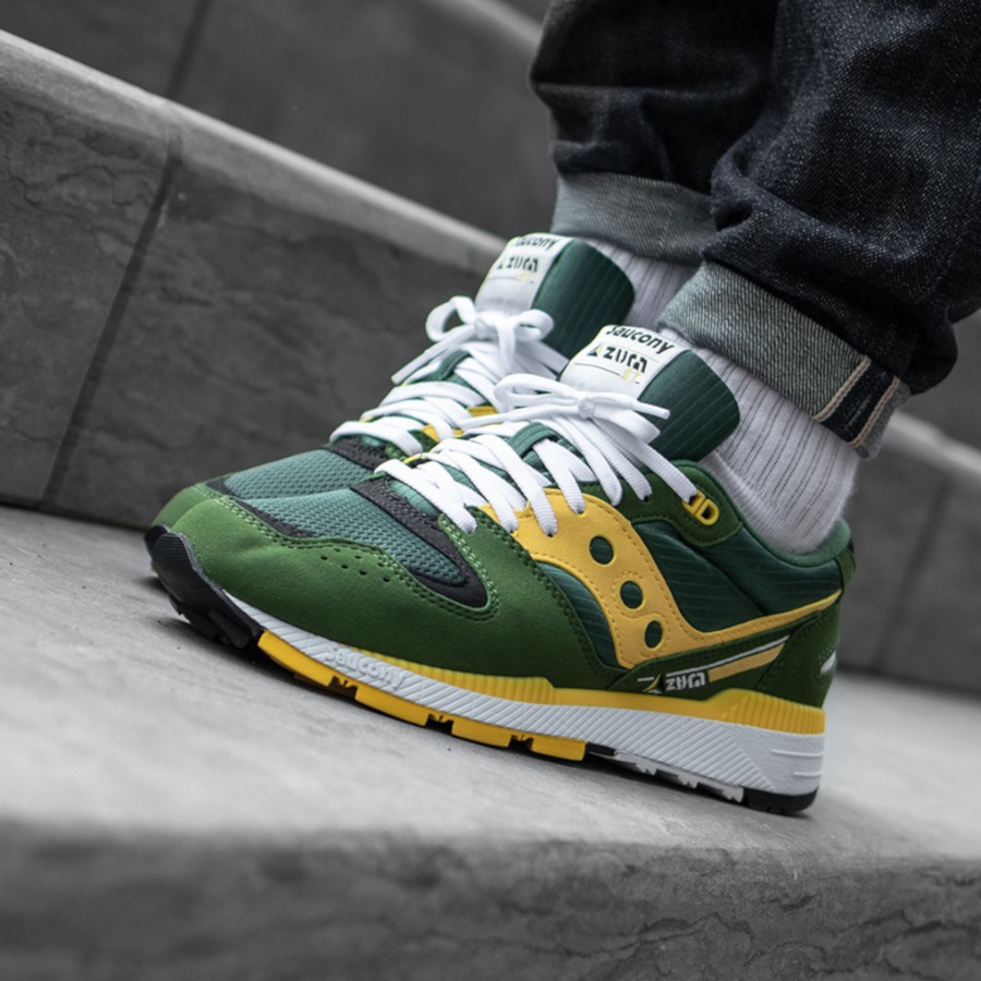 Durant l’été, la Azura ST a eu une exposition inhabituelle. La collaboration avec la marque de denim française Bleu de Paname lui a permis d’avoir une belle petite séquence hype. La marque fondée par Cobbler Abraham Hyde a lancé la Azura ST ‘Green Yellow’ quasi en même temps. Sauf que la chaussure verte avec Saucony Creeks jaune est un peu passée inaperçue. Le statut de general release n’aide pas. Checkez les photos on feet, vous constaterez à quel point elle est sous cotée. Elle est disponible au prix de 100€ chez Courir : voir la paire.