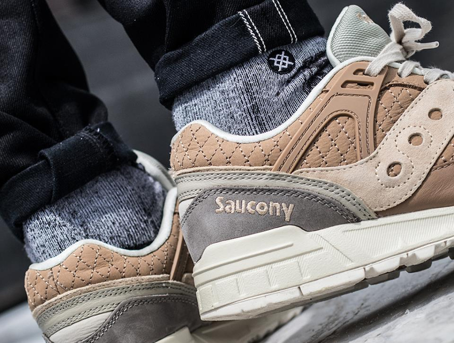 Saucony Grid SD n’en finit plus d’étonner. La ‘Dirty Snow II‘ en janvier, la Heritage en mars… La constance est de rigueur. Un motif blizzard recouvre la première. La seconde, celle qui nous intéresse, présente une tige qui crève l’écran grâce au cuir matelassé. Une édition premium en vente (140€) chez Asos.fr : voir la paire.
