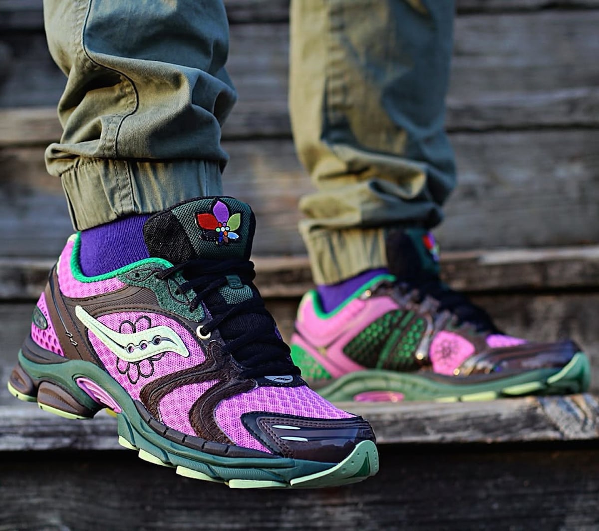 Regardez la collection Flowers Grow Uptown sortie cet automne. Quatre coloris inspirés de plantes qui poussent dans les rues du Bronx. Poison Ivy, Virginia Creeper, Perilla, Sugar Maple. Des Saucony ProGrid Triumph 4 baptisés d’après la flore urbaine new-yorkaise. Cette approche va bien au-delà du simple exercice de style. C’est une vision qui affirme qu’un créateur indépendant garde sa voix, même signé chez une marque centenaire. Saucony joue les amplificateurs, pas les censeurs. Le designer explique comment il voit les choses : la marque lui dit comment réaliser ses idées, jamais quoi créer.