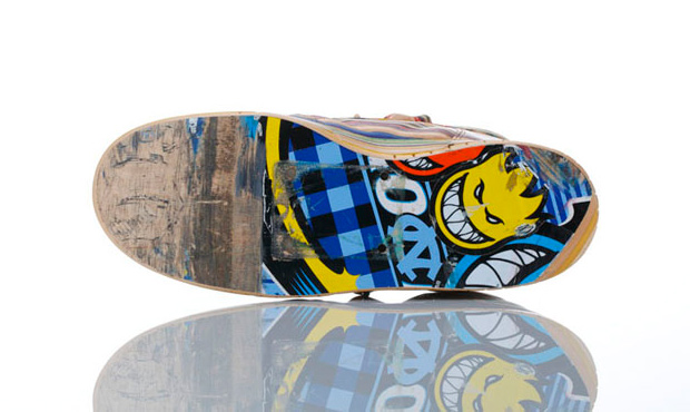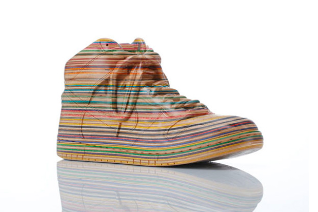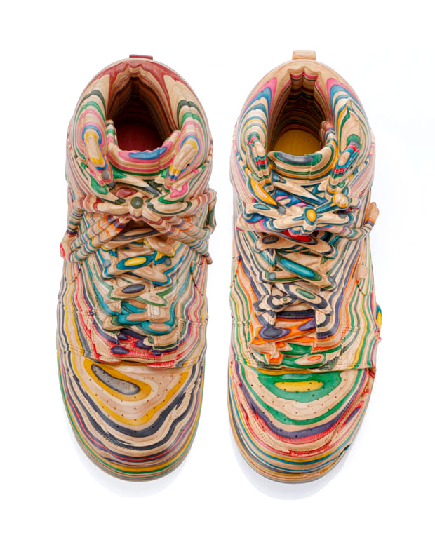 Haroshi fabrique ses oeuvres d’art en reclyclant des vieux stakeboards. C’est de l’art éthique ou responsable si vous voulez. Cette fois-ci, Haroshi a sculpté une très jolie Nike Dunk. Elle a été fabriquée à partir de skates appartenant à P-Rod, Lance Mountain, Eric Koston, Brian Anderson, Cory Kennedy et d’autres skateurs.