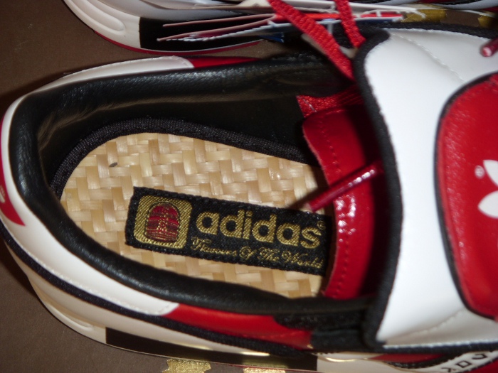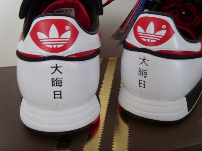 Vous avez dit le pack Flavors of the world ? Il est sorti entre 2007 et 2008 avec pas moins de 9 paires. Chaque sneaker représente un pays du monde. La Adidas Japan Micropacer Omisoka explore la culture nippone. Le thème est celui du nouvel an japonais. Outre les caractères kanji qui figurent sur la façade et le talon de la paire, un tatami est imprimé sur la semelle. Pour avoir vu passer la Adidas Japan Micropacer Omisoka entre mes mains, je peux vous dire que le cuir est d’une excellente qualité. La boîte lui donne un caractère luxueux. La sneaker est limitée à 2845 exemplaires dans le monde.