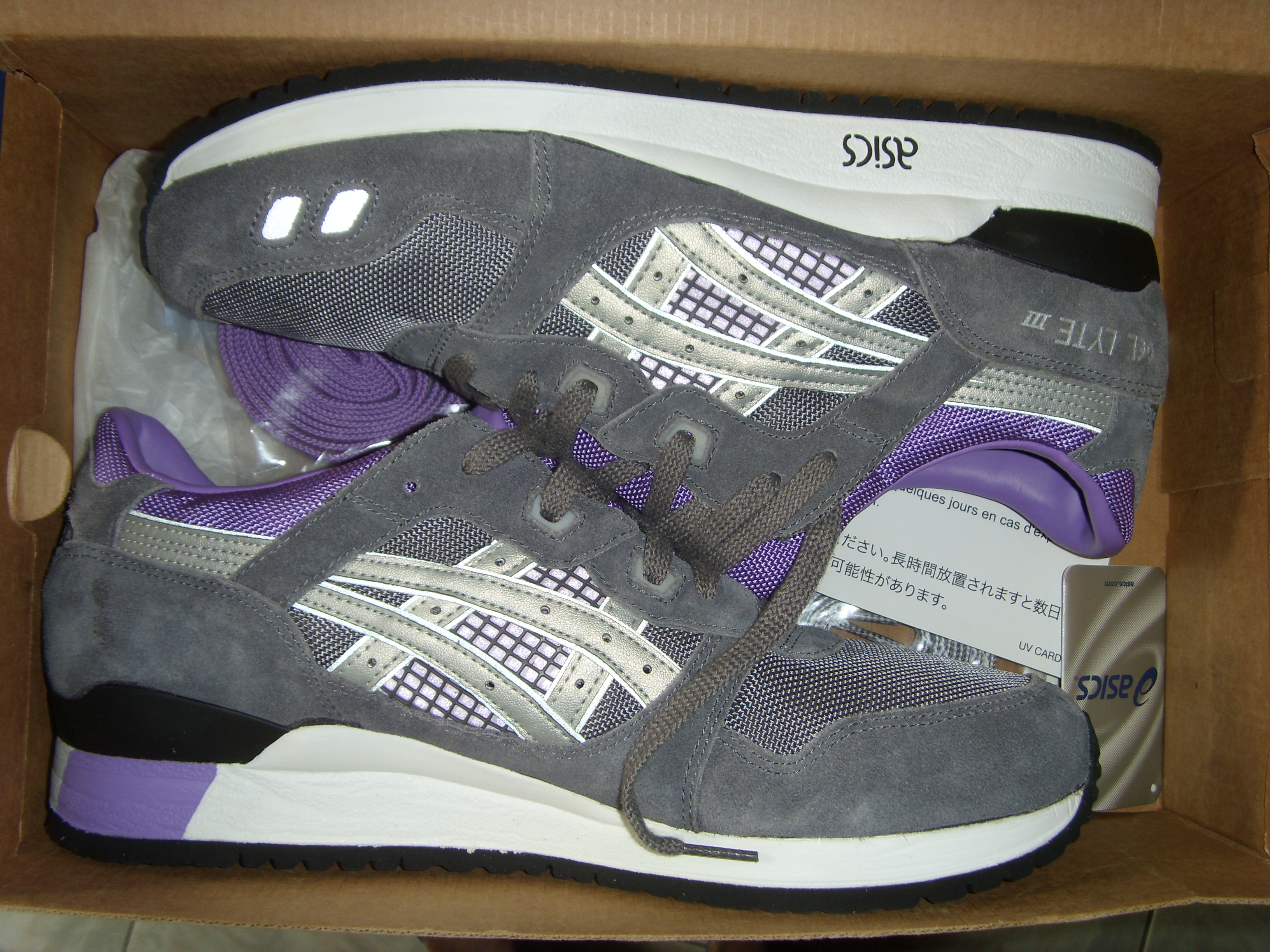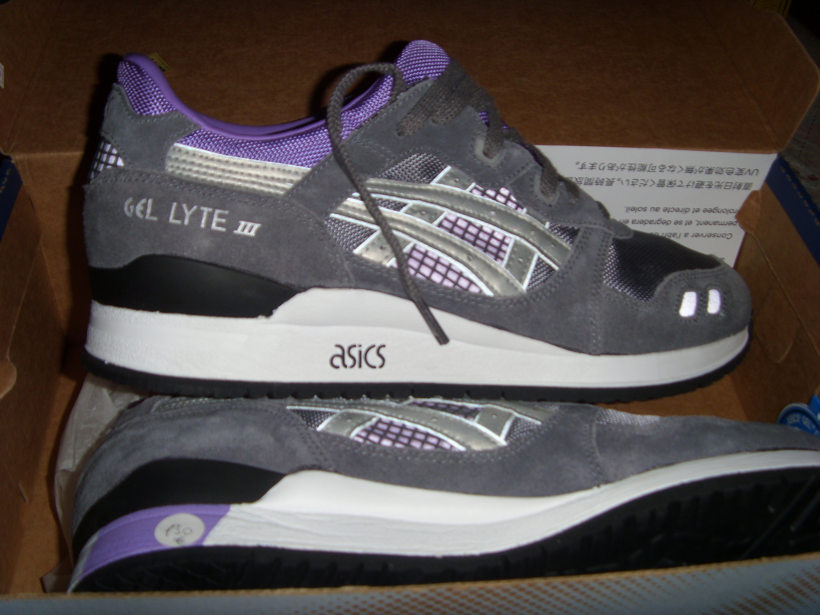 En 2008, la Asics Gel Lyte III (3) x Solebox a débarqué dans les boutiques. Deux versions ont été produites : l’une avec l’inscription Solebox (limitée à 250 paires et vendue en exclusivité chez la boutique allemande) sur le talon et l’autre sans (modèle grand public). La Asics Gel Lyte III (3) x Solebox est fabriquée avec un joli daim violet. La semelle change de couleur au contact des rayons UV. La paire est particulièrement bien assortie. J’attends avec impatience la prochaine Solebox x Reebok !
