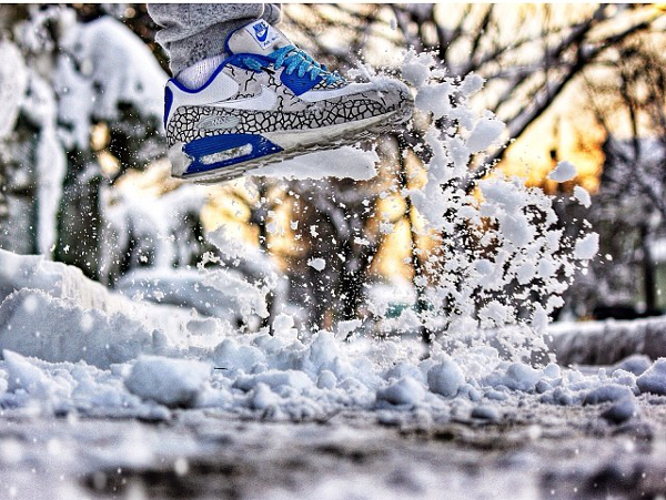 Nous sommes en pleine période hivernale et certains ont la chance de pouvoir profiter des pistes de ski. La plupart des sneakers ne sont pas adaptées au temps neigeux. Paradoxalement, la blancheur de la neige les fait très bien ressortir comme cela est visible sur cette série de clichés :