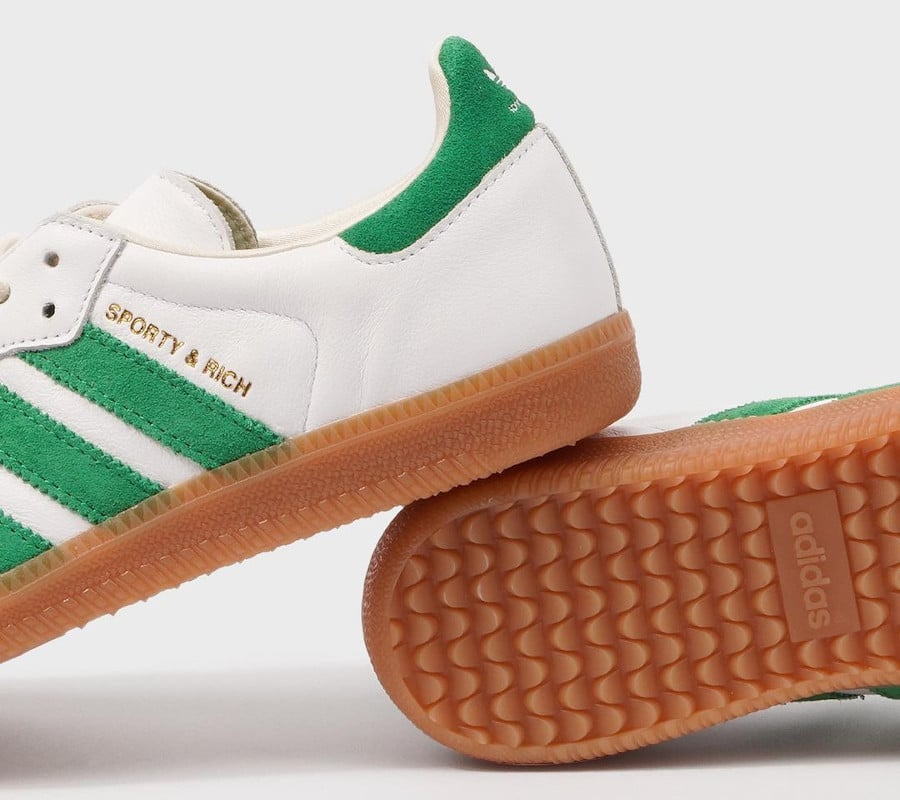 Un rêve devenu réalité. Au début du mois, Emily Oberg était très fière d’annoncer sa collaboration avec Adidas Originals. Force est de constater que pour une première, cette dernière s’en tire bien. Dans le choix des matériaux et le soin apporté aux détails, la grande passionnée d’athleisure marche sur les traces de Wales Bonner. La fondatrice de Sporty and Rich a retravaillé 3 silhouettes rétro. Commençons par la Adidas Samba OG White Green. Elle s’est inspirée d’une sneaker des années 80, la Universal. L’ancienne chaussure de foot reprend ses 3 bandes vertes, son cuir blanc et sa semelle en caoutchouc. Le caractère premium de l’édition spéciale vient du suède et surtout du Sporty&Rich en caractères dorés. Des Adidas Campus 80’s en daim bordeaux, on en a vu plein. La Burgundy de l’ancienne creative lead de Kith se distingue par une apparence vintage et surtout sa doublure en satin. Ajoutons le patch portant la mention « Heatlh and Wellness« . Je n’ai pas oublié la Stan Smith SRC. La meilleure basket du trio fera l’objet d’une review à part.