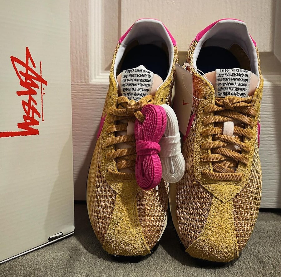 Où l’acheter ? La Stüssy x Nike LD-1000 Sanded Gold and Laser Fuchsia sera disponible au prix de 109.99€ le vendredi 9 août chez Snkrs (à 9 heures) : voir la paire.