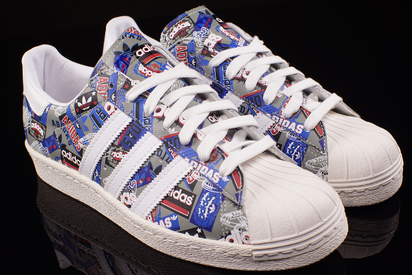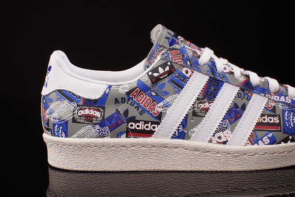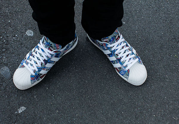 Nigo continue de faire du très bon boulot du côté de chez Adidas. Le créateur de la marque Bape n’a rien perdu de son talent. La Superstar 80’s ‘Pioneers’ est recouverte par un imprimé original. Sur le print, on distingue le trèfle, plusieurs logo Adidas et dessins de Superstar.