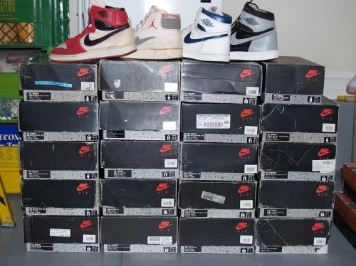 Air Jordan 1 Carolina Blue, Ajko, Air Jordan 5 Purple….. Cette collection comporte un nombre incroyable de modèles originaux de la marque au Jumpman. Leur propriétaire a dû dépenser une belle fortune….