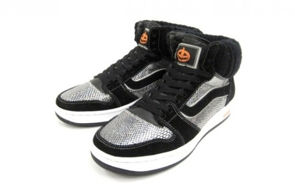 Je n’ai pas vu de modèles Vans x Halloween en 2011. Par contre, ils étaient fleuve les années précédentes. La thématique a été exploitée à travers les modèles Vans Sk8 Hi, V2041, Slip On, Authentic, Old Skool et Resolution. La marque de skate exploite avec brio l’univers de cette fête : Chauves souris, citrouilles…. Les modèles respectent également le code chromatique (noir est orange) d’Halloween. Les têtes de citrouille font référence à Jack O Lantern, ce fameux personnage du conte Irlandais.
