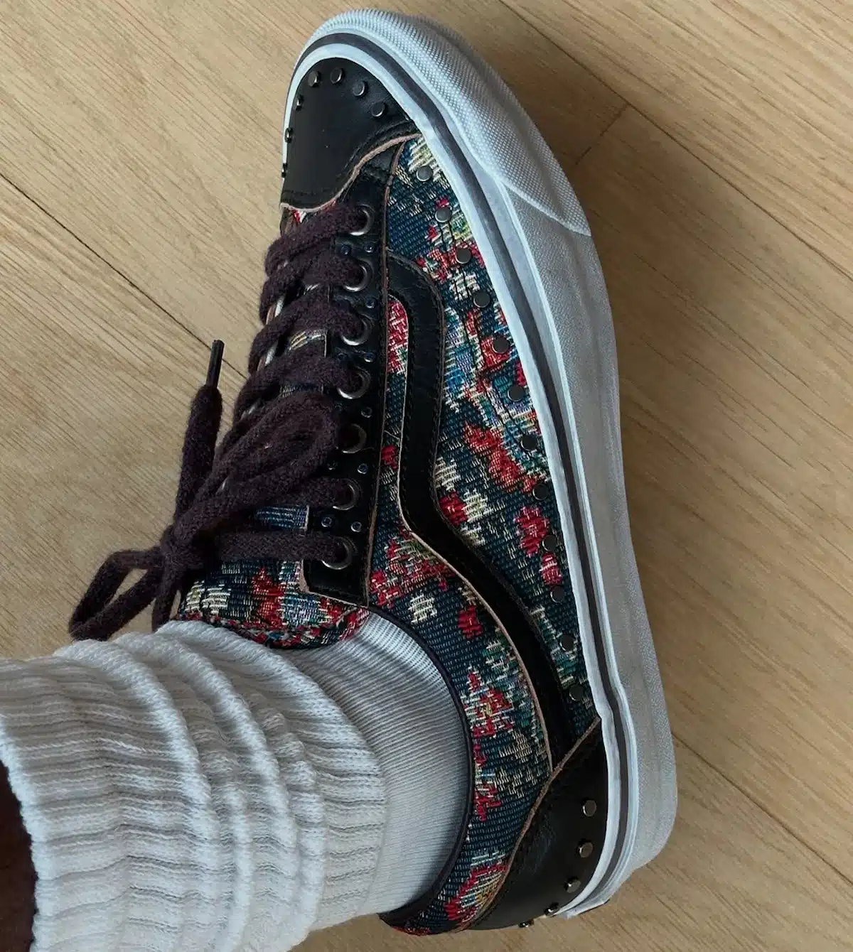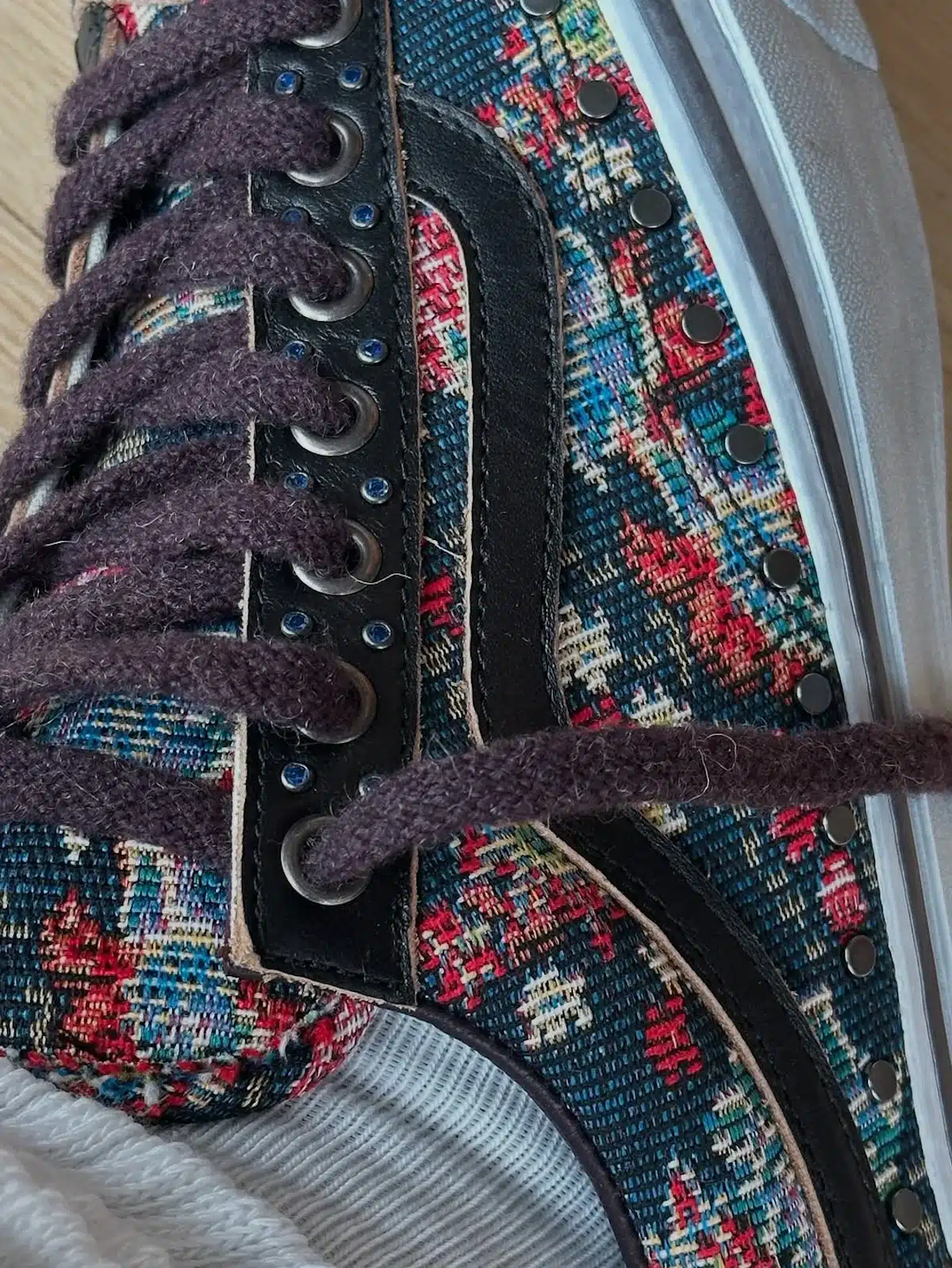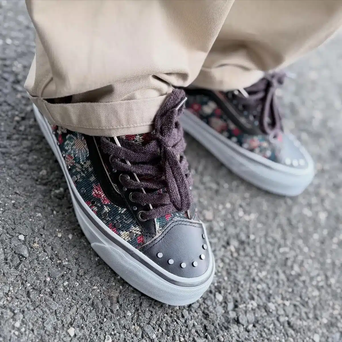 Cocona Hiraki a ajouté des bracelets d’amitié. Efron Danzig est partie sur du laçage corset façon haute couture. Le message est clair : la Vans Old Skool mérite le traitement grand luxe.