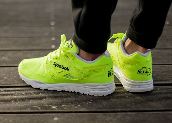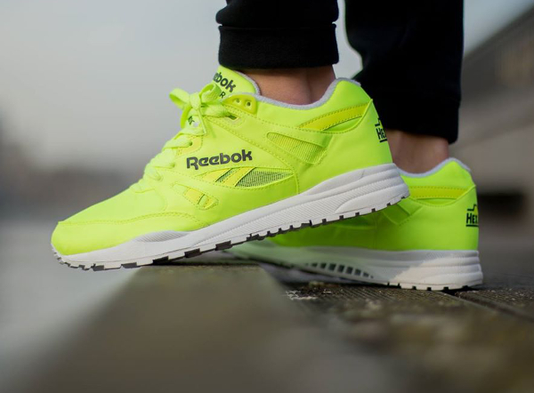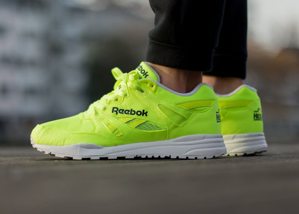 Une Reebok Ventilator que je pourrais qualifier de « Ball out » tant son combo est proche de celui de la Pump Court Victory x Alife. La différence se situe au niveau des matériaux. Elle ne se compose pas de feutrine (la matière de la balle de tennis) mais de Monomesh. Cette running très flashy est disponible (90 euros) chez Zalando : voir la paire.